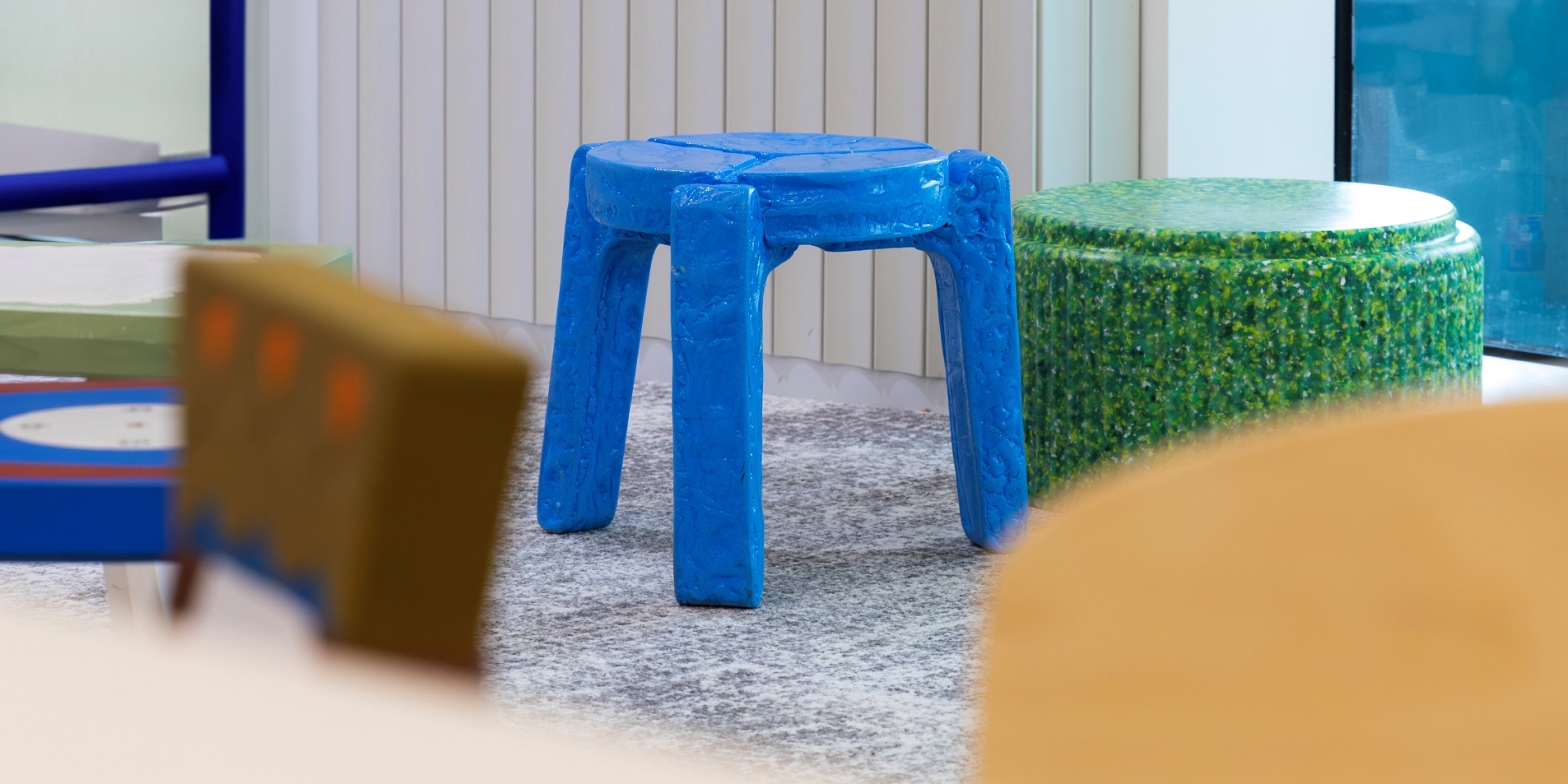 저 역시 공공 프로젝트는 제약이 많을 거라 예상했지만, 이번에는 클라이언트의 전폭적인 신뢰가 있었습니다. “70인의 가구를 이 작가가 책임지게 하라”라는 파격적인 결정 덕분에, 예산이나 디자인 사양을 두고 소모적인 줄다리기를 하기보다 ‘어떻게 하면 업사이클 가구가 공공 공간에서 기성 제품 이상의 완성도를 보여줄 것인가’라는 본질적인 고민에 집중할 수 있었습니다. 덕분에 평소 바쁜 일정 탓에 화이트 컬러로만 선보였던 체어를 이번엔 소재가 가진 본연의 다채로운 색감을 살려 ‘무지갯빛’으로 구현해 냈습니다. 개인적인 만족을 넘어, 지속 가능한 디자인이 얼마나 감각적이고 풍요로울 수 있는지 시각적으로 대중에게 증명해 보이고 싶었던 오랜 갈증을 해소한 순간이기도 했죠.